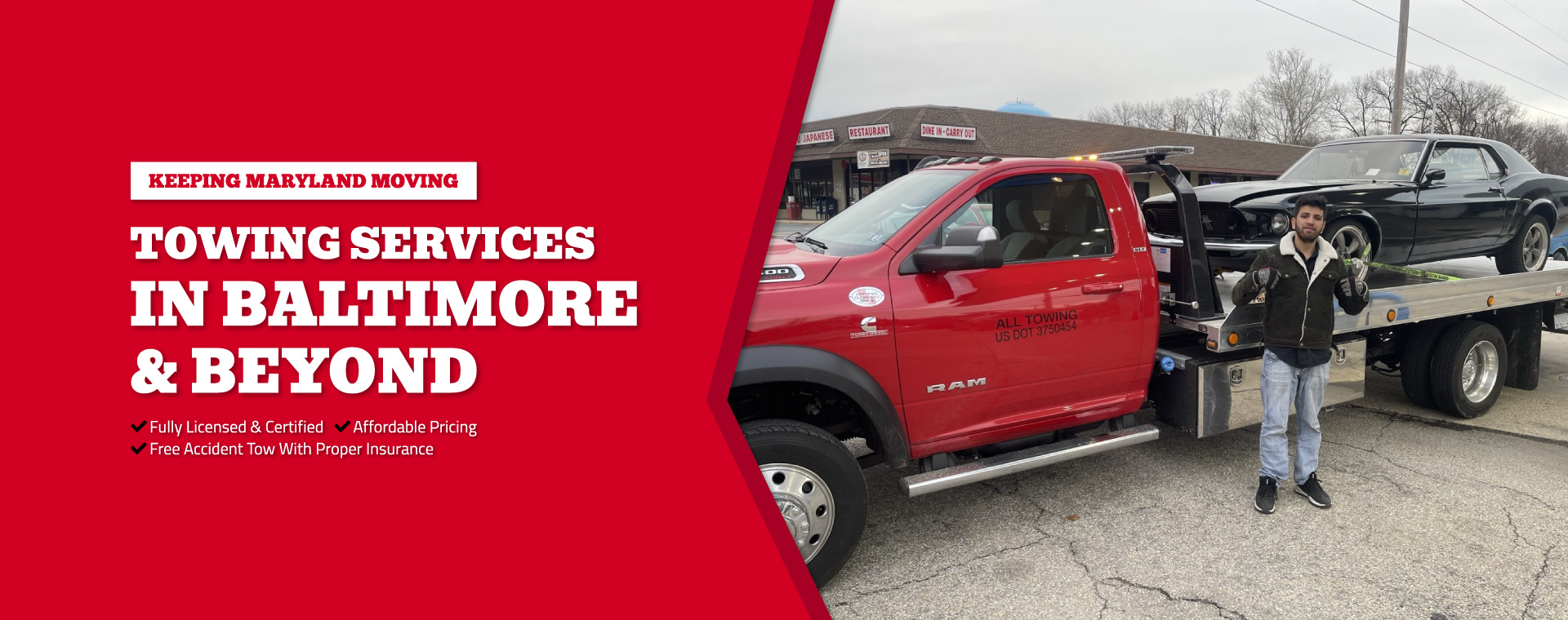 For over half a decade, All Towing has been the trusted, family-owned and operated tow company serving Baltimore, Maryland, and beyond. We pride ourselves on leading the way in professional towing and roadside services. Our friendly and experienced tow truck operators can handle vehicles up to 25,000 lbs, using state-of-the-art equipment and winch-out capabilities to ensure top-quality service. Whether you need a quick battery jumpstart or a damage-free lockout service, we’ve got you covered with affordable, comprehensive solutions. In the competitive world of towing and roadside assistance, we stand out by adding a personal yet professional touch to every service call. We care deeply about easing your stress and providing reliable, efficient assistance when you need it most.